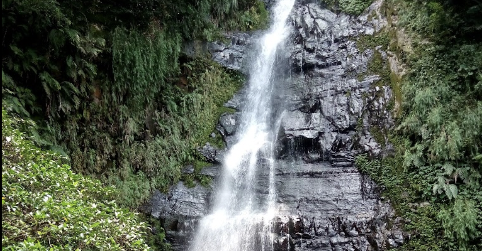 月眉坑瀑布是屬於所謂的秘境路線,保留了野外原始的地形風貌。沿路幽幽山徑平緩好走,林木茂密蒼鬱,行至溪畔清澈溪水冰涼入心。從整片的岩壁上如靠慕般滚下來,壯觀美麗。