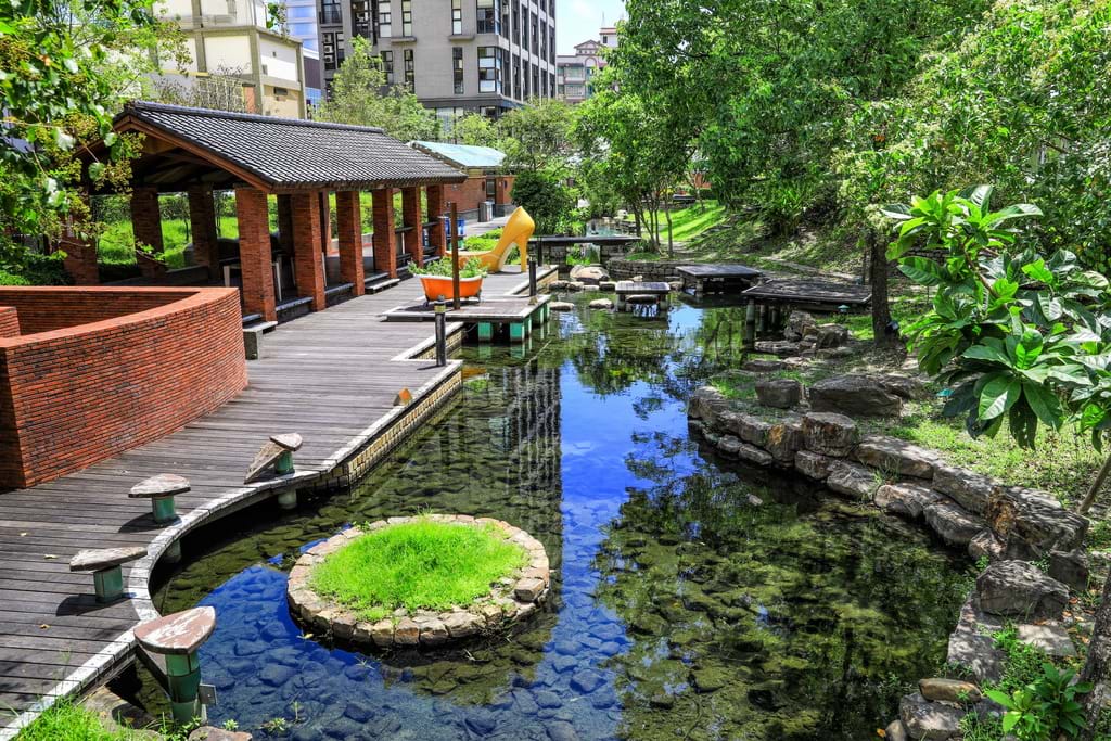 蜊埤湖的湖畔種植了落羽松和銀杏,每逢秋冬的季節時,落羽松逐漸轉紅,展現橙黃、紅色那樣繽紛的色彩,倒映在湖面格外浪漫,湖上悠游的綠頭鴨好愜意,令人彷彿置身於國外的美景。