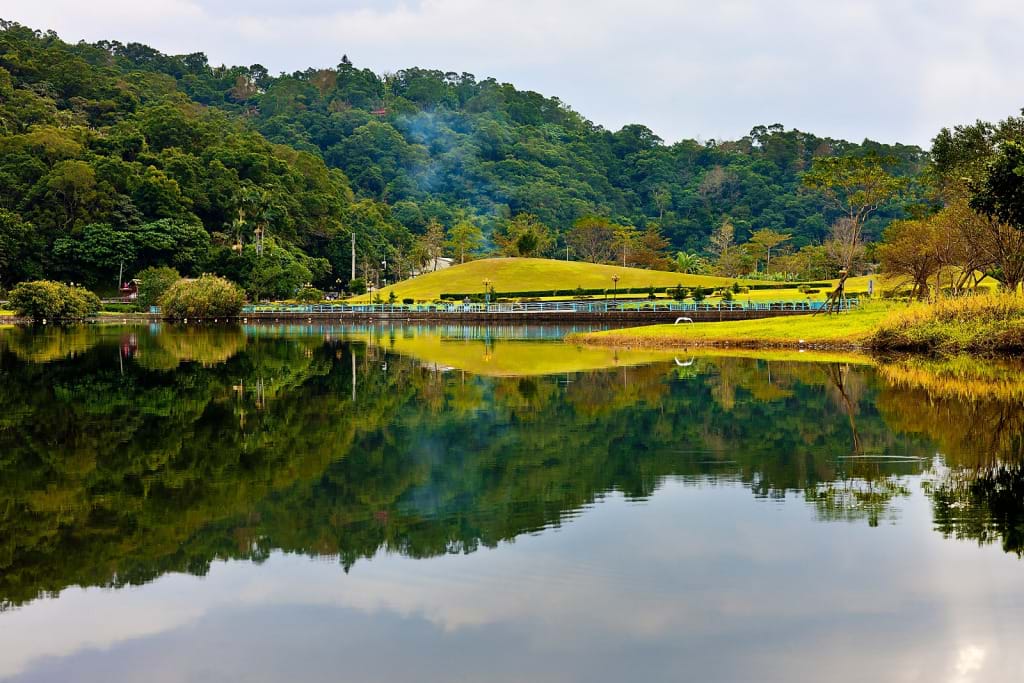 此湖三面環山,寺廟環山林立,暮鼓晨鐘,清澈的水質,湖面如明鏡通徹,泛漾青山倒影,景緻宜人,湖中可以搖槳泛舟尋幽,湖光山色悠遠寧靜。